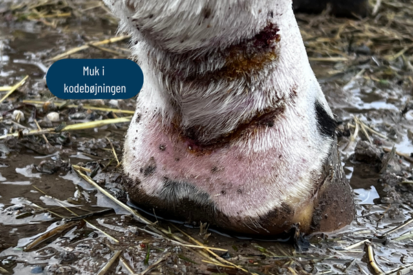 • Muk kan opstå efter sår eller skader på huden omkring benene.