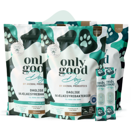 Hvis din hund har problemer med maven, er det afgørende at få dens fordøjelsessystem tilbage i balance. Hos Godebakterier anbefaler vi varmt OnlyGoodDog – et tilskud af høj kvalitet, der indeholder naturlige mælkesyrebakterier udvundet fra en sund hunds tarmflora. Dette unikke tilskud er udviklet til at støtte og forbedre din hunds fordøjelse på en naturlig måde. Udforsk OnlyGoodDog her på siden, og kontakt os gerne for personlig rådgivning om, hvordan du bedst kan hjælpe din hund til en sundere mave.