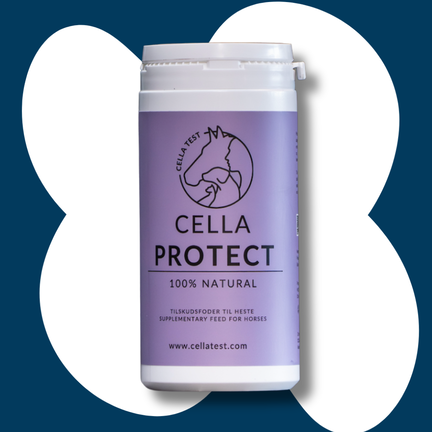CELLA PROTECT er et 100 % naturligt tilskudsfoder til heste, sammensat som en 3-måneders kur, der understøtter hestens immunforsvar, stofskifte og energi. Produktet er ideelt til heste, der har gennemført en CELLA Test (hårcelle-analyse), og som har behov for at beskytte kroppen mod ydre påvirkninger og genoprette naturlig balance.
