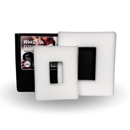 Plasteret er fremstillet af medicinsk klassificeret TPE, og klisteret er medicinsk klassificeret akryllim, hvilket gør det sikkert at bruge på din hest. RHEVA® findes i to størrelser: Small og Large, for at passe til forskellige størrelser af rifter.
