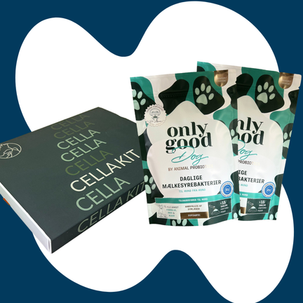 Når du bestiller denne pakke, får du et CELLA KIT hårcelletest – inklusive 2 poser OnlyGoodDog mælkesyrebakterier uden ekstra beregning (samlet værdi 398 kr).